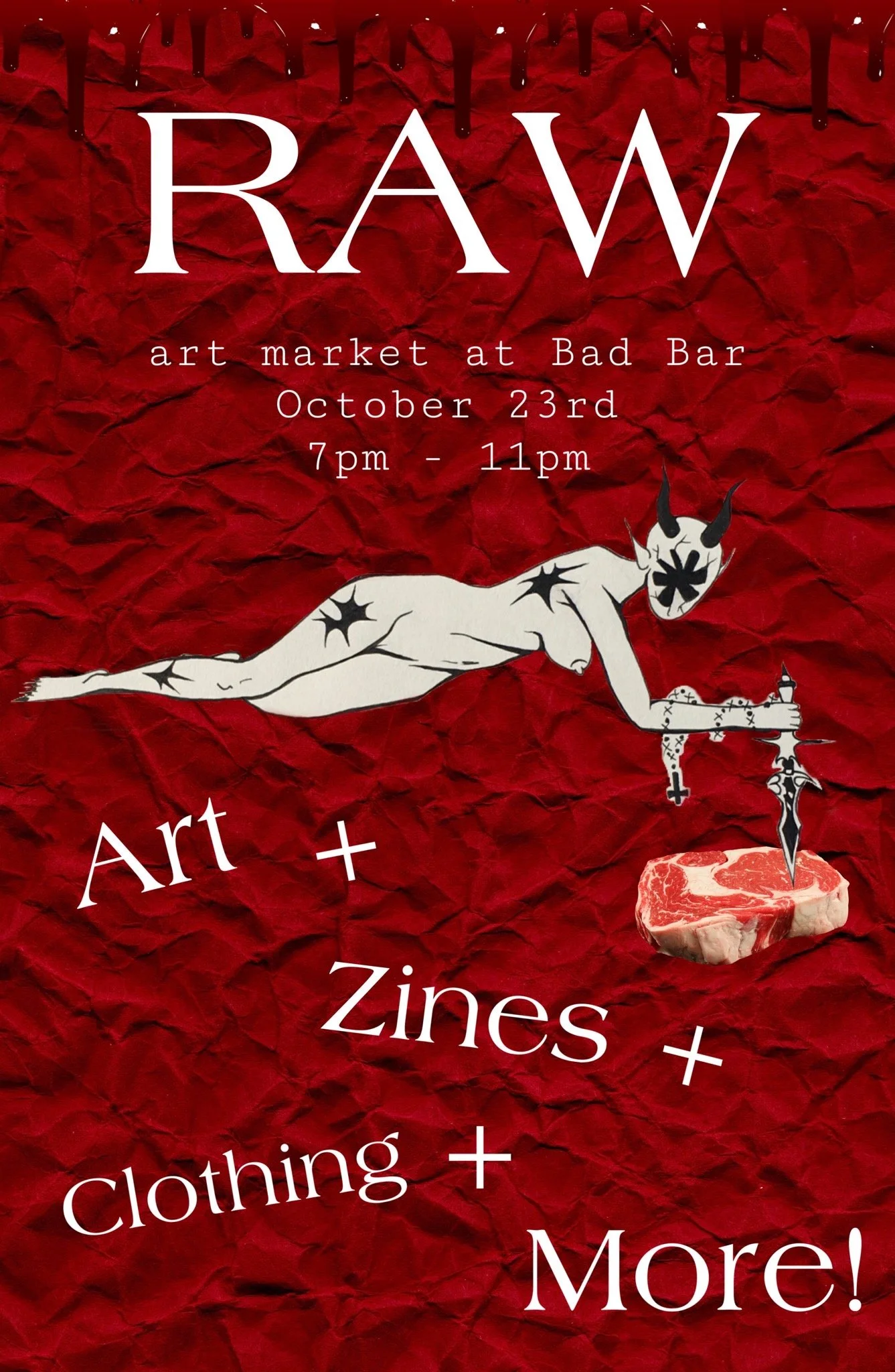 A late night art market and zine release hosted by Just How You Like It at Bad Bar. Featuring 10+ local venders including zines, art, jewelry, vintage clothing & more!